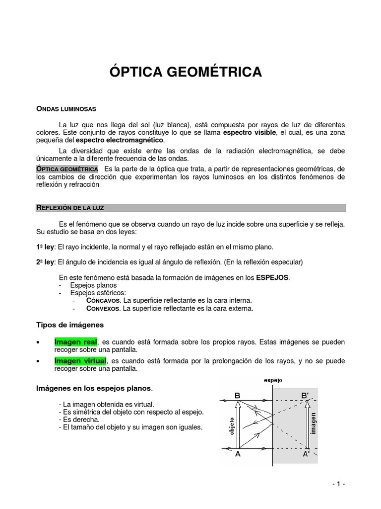 . BACHILLERATO FÍSICA 9. ÓPTICA GEOMÉTRICA. Dpto. de Física y Química. R. Artacho - PDF Free Download DOC) ESPEJOS Y LENTES 1 | Ana Osorio - Academia.edu Septiembre 18-19, Opción B